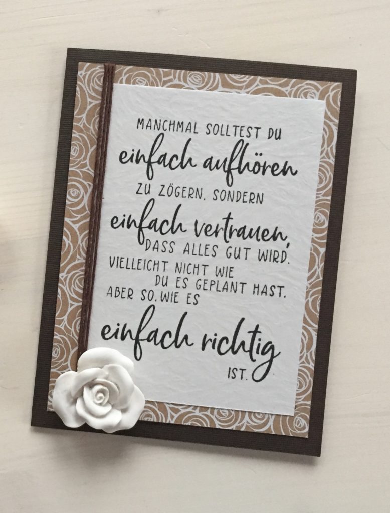 Vor einiger Zeit habe ich mir diesen Stempel gekauft. Der Spruch hat mich angesprochen und bestärkt mich darin, dass mein Entscheid richtig ist.